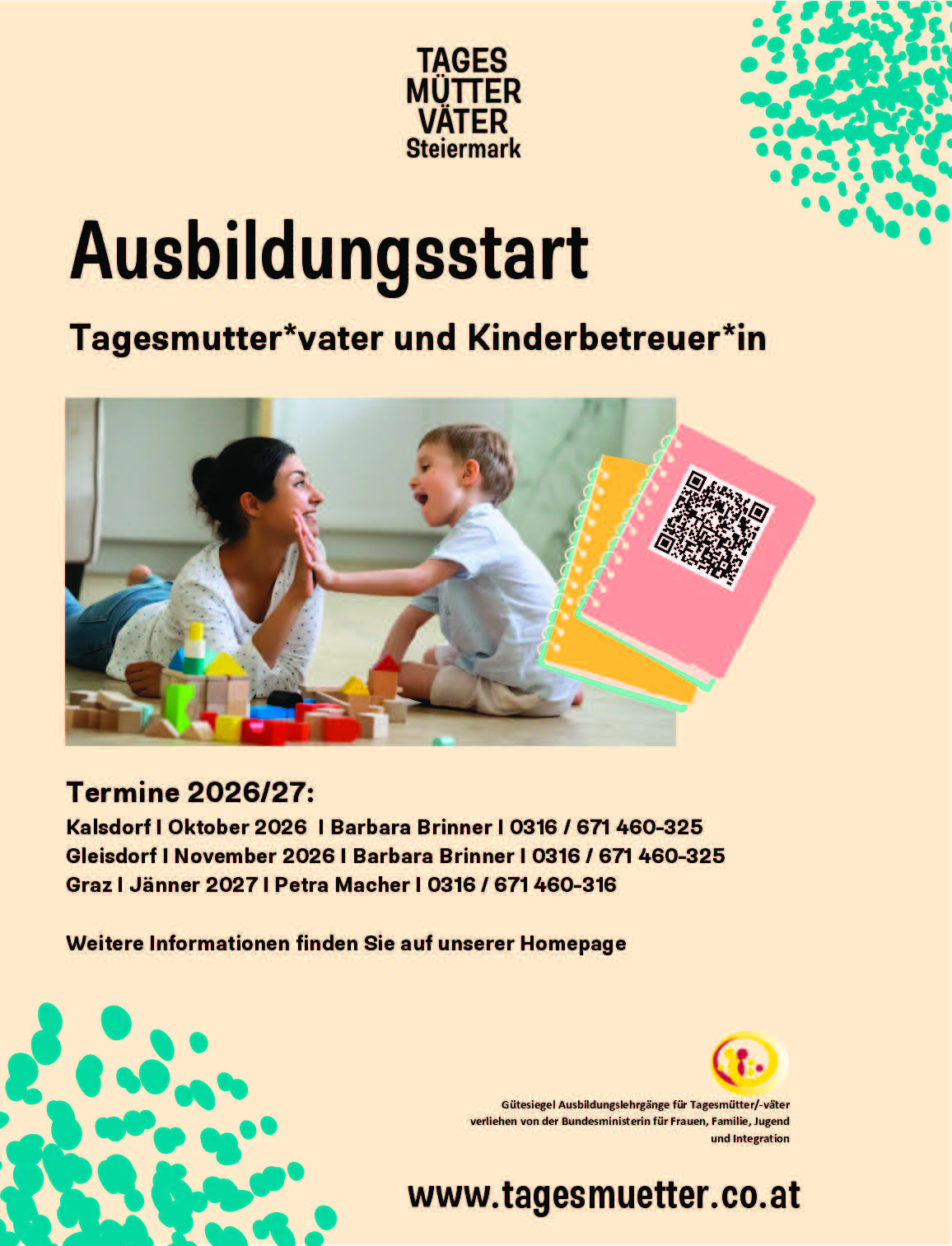 Ausbildungsstart Tagesmutter*vater und Kinderbetreuer*in