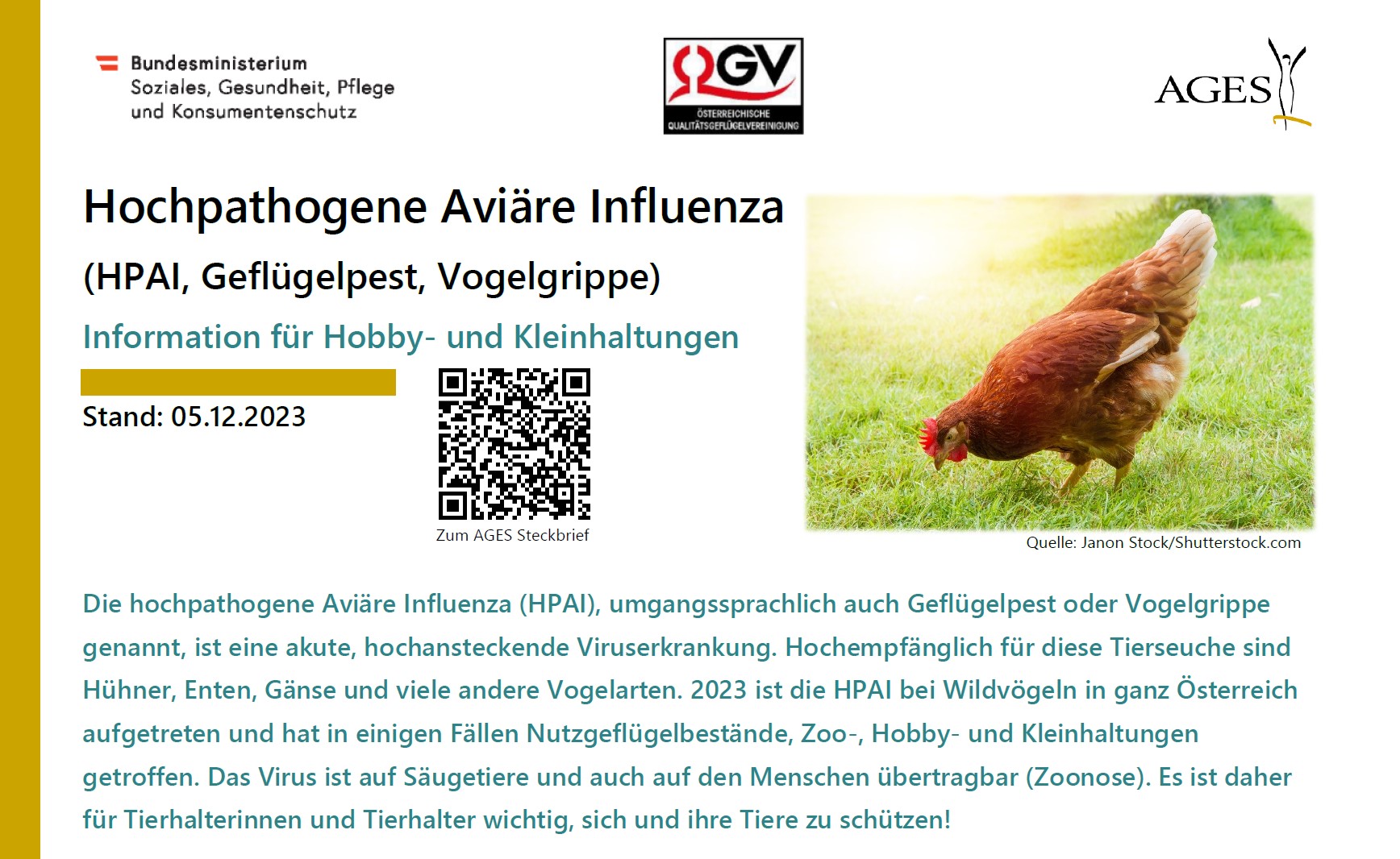 Geflügelpest: Merkblätter für Landwirte und Tierärzte