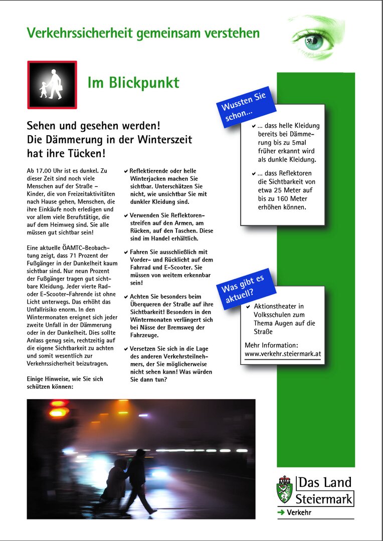 Im Blickpunkt: Sehen und gesehen werden! Die Dämmerung in der Winterszeit hat ihre Tücken