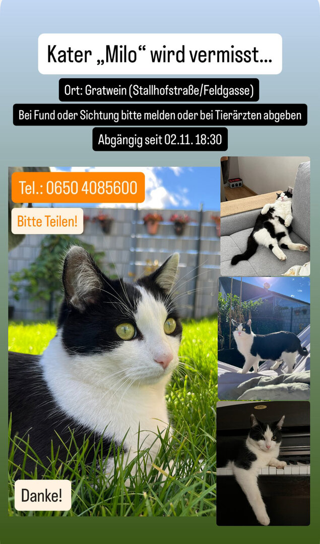 Kater Milo wird vermisst (Stallhofstraße/Feldgasse)