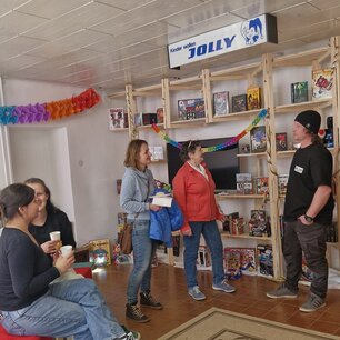 Für private Veranstaltungen kann der Salon Courage gegen eine Gebühr genutzt werden. Der Raum ist mit einer Küche, Regalen und flexibel einsetzbaren Möbeln ausgestattet, um verschiedene Nutzungsformen zu ermöglichen.