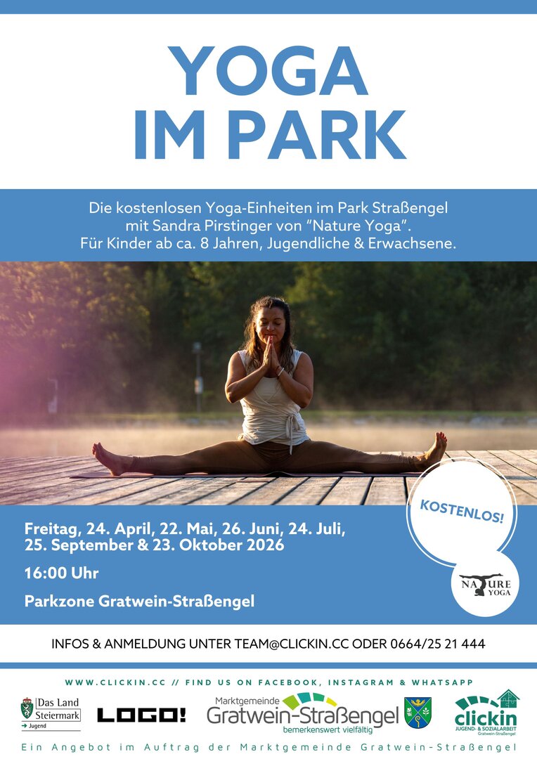 Die kostenlosen Yoga-Einheiten im Park Straßengel mit Sandra Pirstinger von "Nature Yoga". Für Kinder ab ca. 8 Jahren, Jugendliche & Erwachsene.