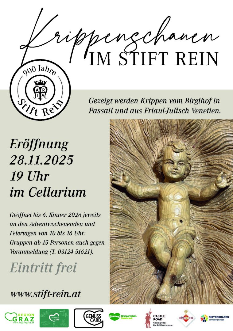 Gezeigt werden Krippen vom Krippenverein Wundschuh und vom Birglhof in Passail und aus Julisch-Fenetien.