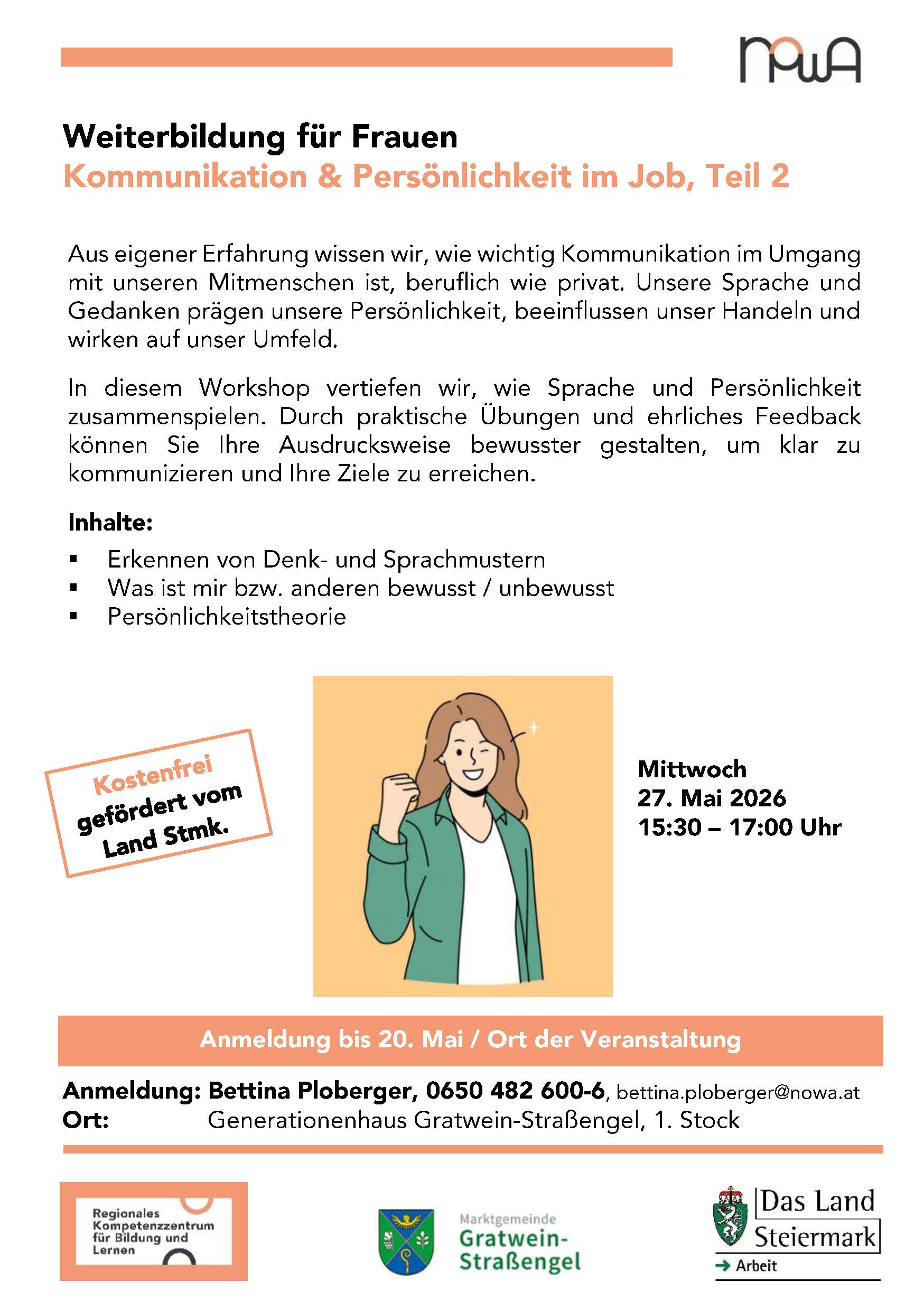 Anmeldung: Bettina Ploberger, 0650 482 600-6, bettina.ploberger@nowa.at