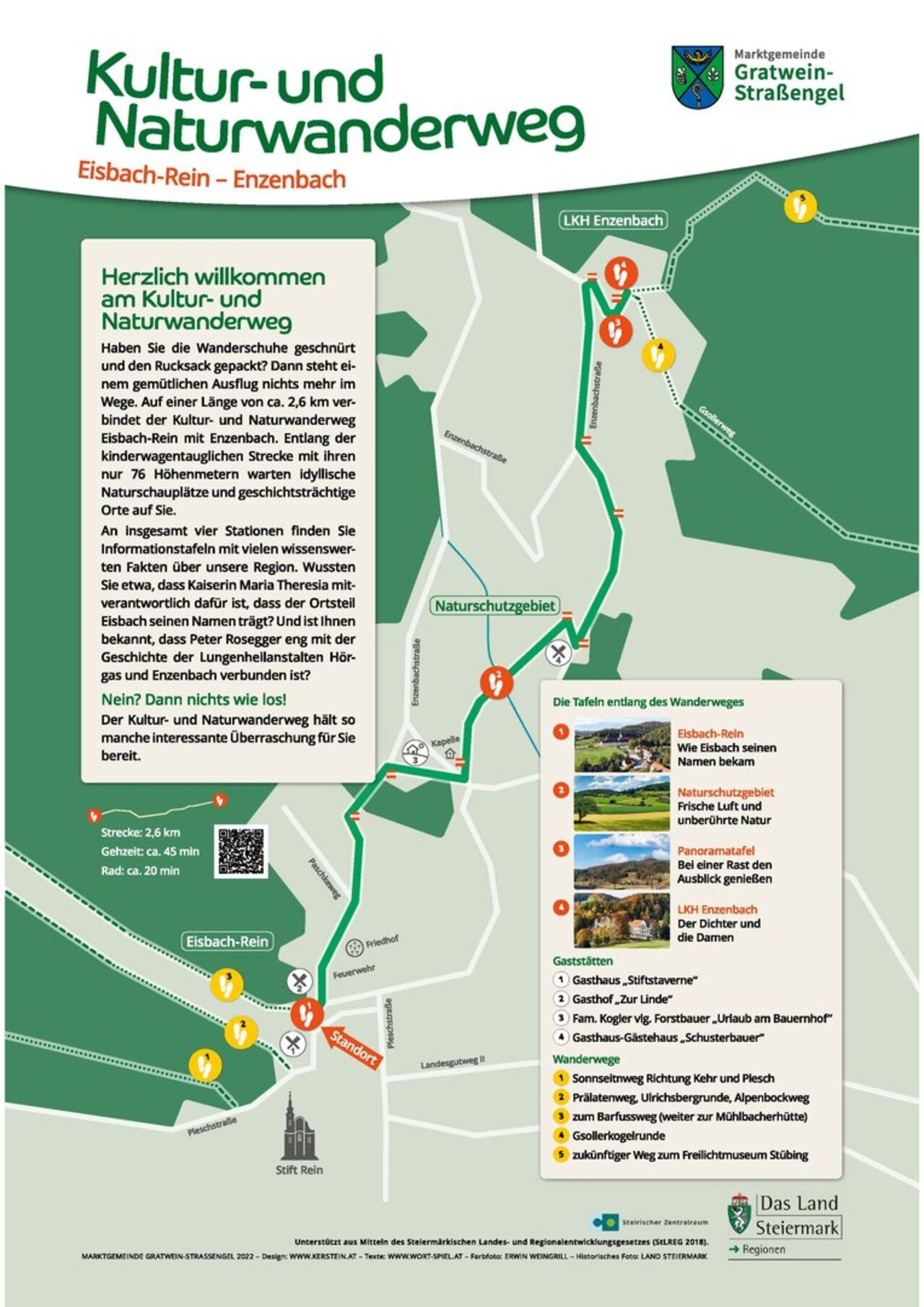 - Kultur- und Naturwanderweg (ca. 1 Stunde; genaue Beschreibung unten angeführt) → Reiner Kultur- und Naturweg | Region Graz