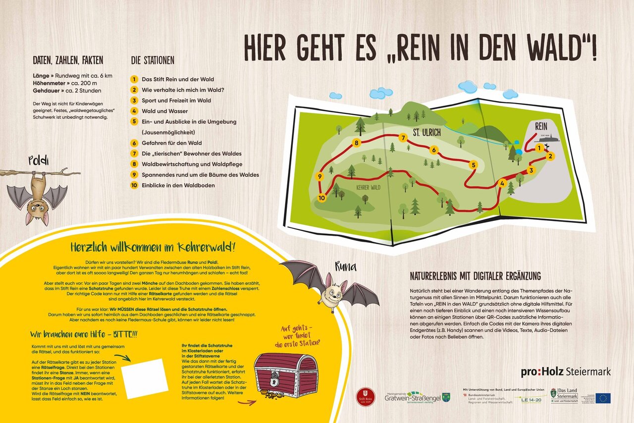 - Erlebnislehrpfad 'Rein in den Wald' (ca. 2 Stunden; genaue Beschreibung unten angeführt) → Rein in den Wald - ein Erlebnispfad | Region Graz
