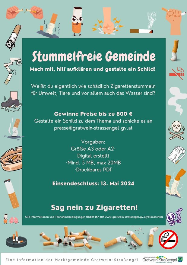 Um darauf aufmerksam zu machen, starten wir einen Gestaltungswettbewerb. Gestalte ein Schild zu dem Thema und schicke es an presse@gratwein-strassengel.gv.at
